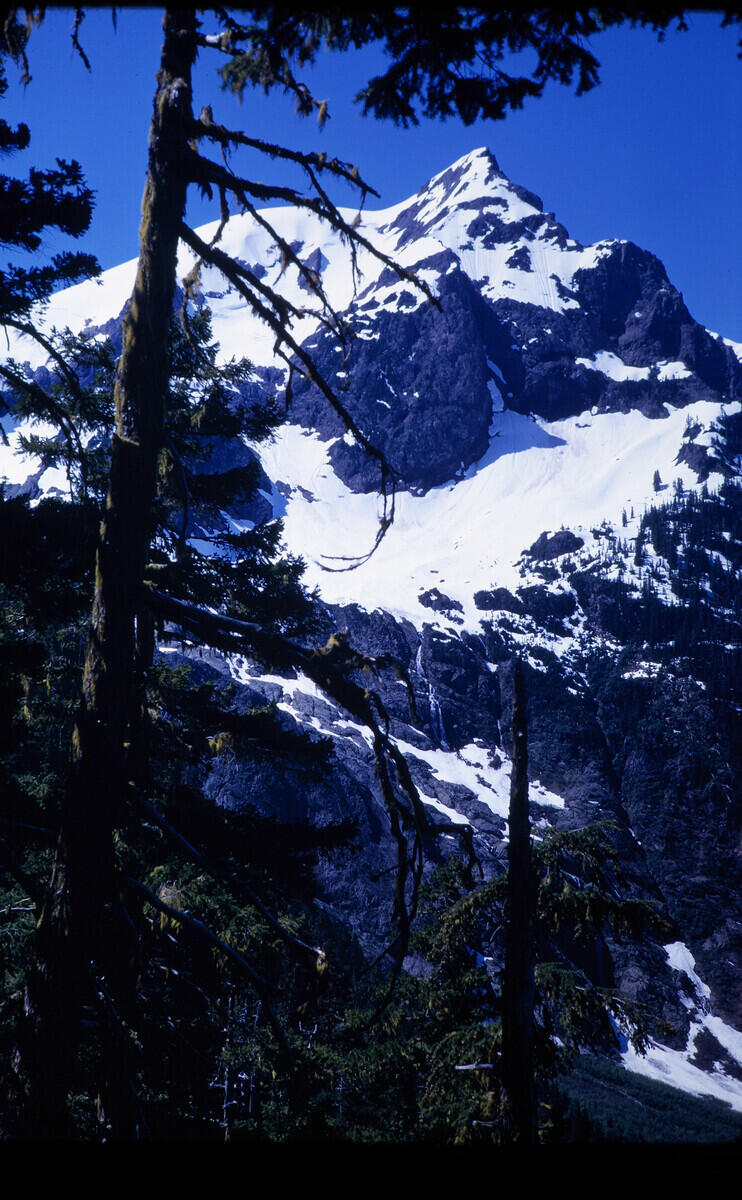 A view of the ridge leading to Mt Olympus from the north. The smooth snow