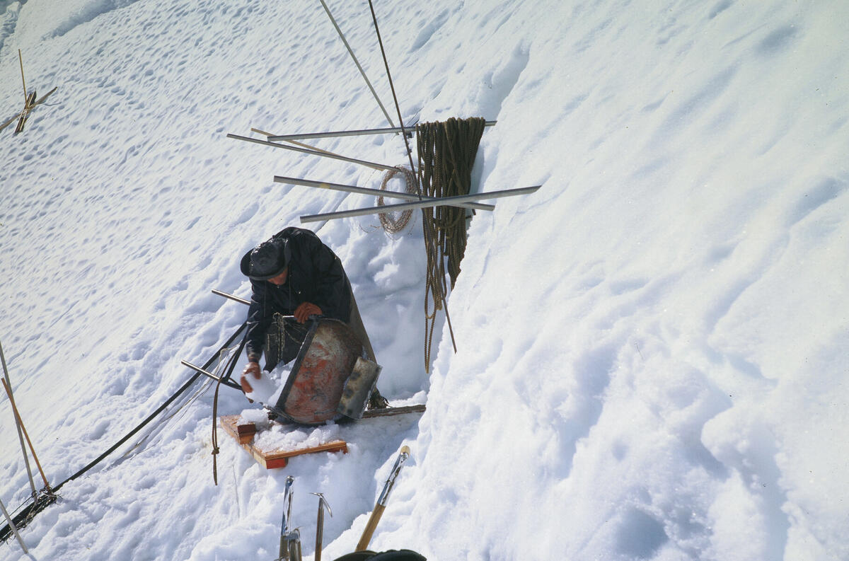 The digging was done by a crew of 6. One would make the cuts diagonally
