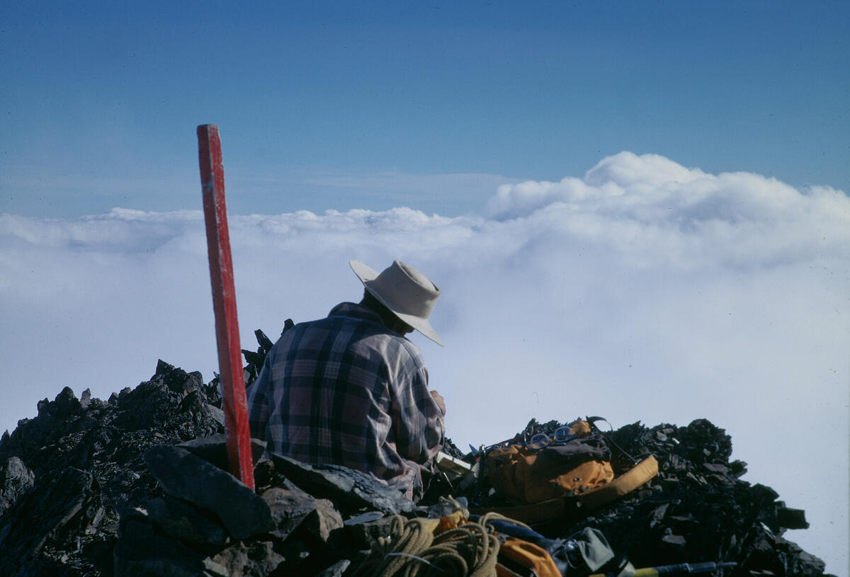 certainly different from the previous summit photo. Note the clouds below