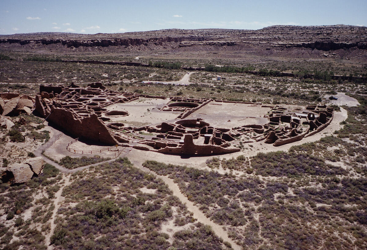 At Chaco Canyon. Pueblo Bonito seen from the Pueblo Alto Trail.