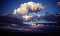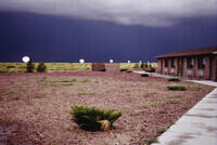 The VLA east arm and the Visiting Scientist Quarters with a storm.