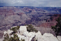 Looking down into the Grand Canyon from high on the Hermit Trail, perhaps at the rim.