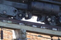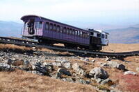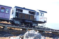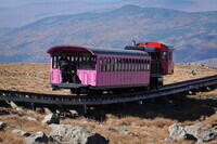A cog railroad engine and car. This gives an idea how steep the rail is.