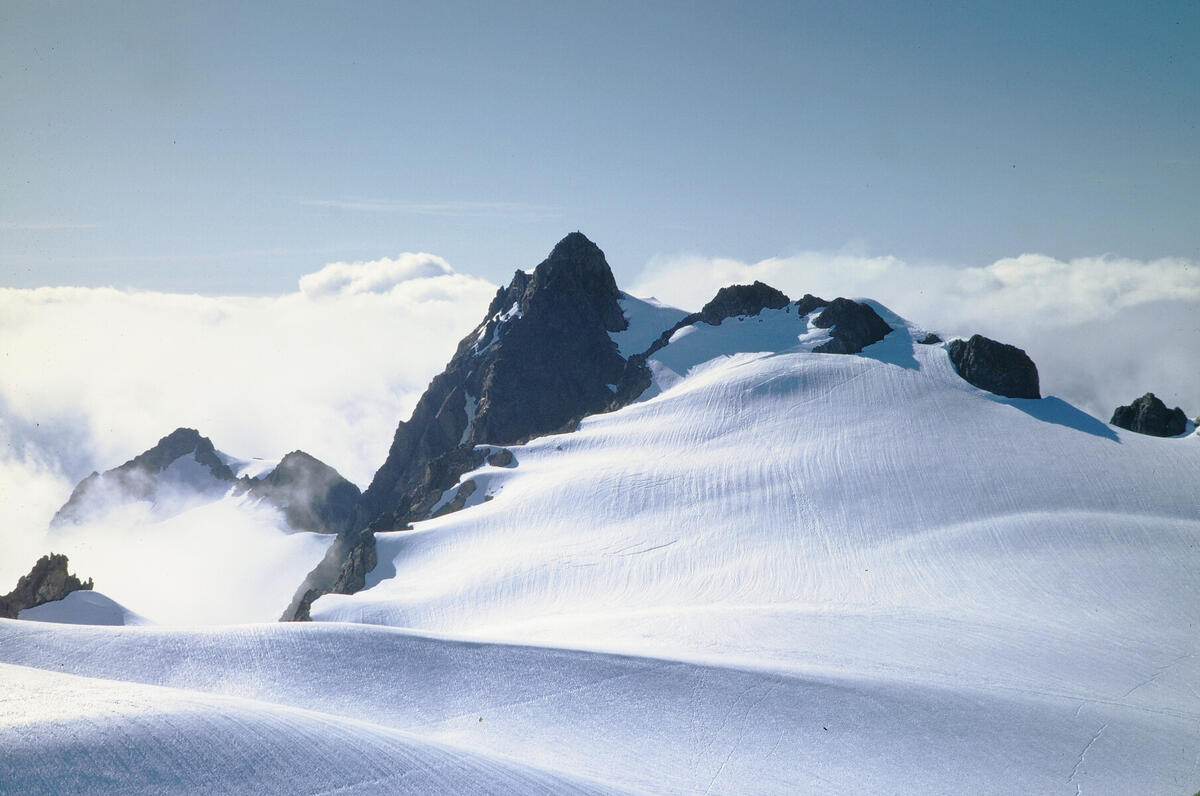 alignment. From the East Peak, the summit behind the West Peak is not nearly