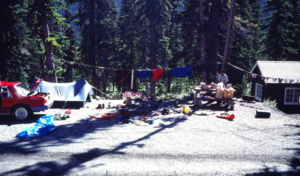 Drying everything out after the wet Mt. Victoria climb.