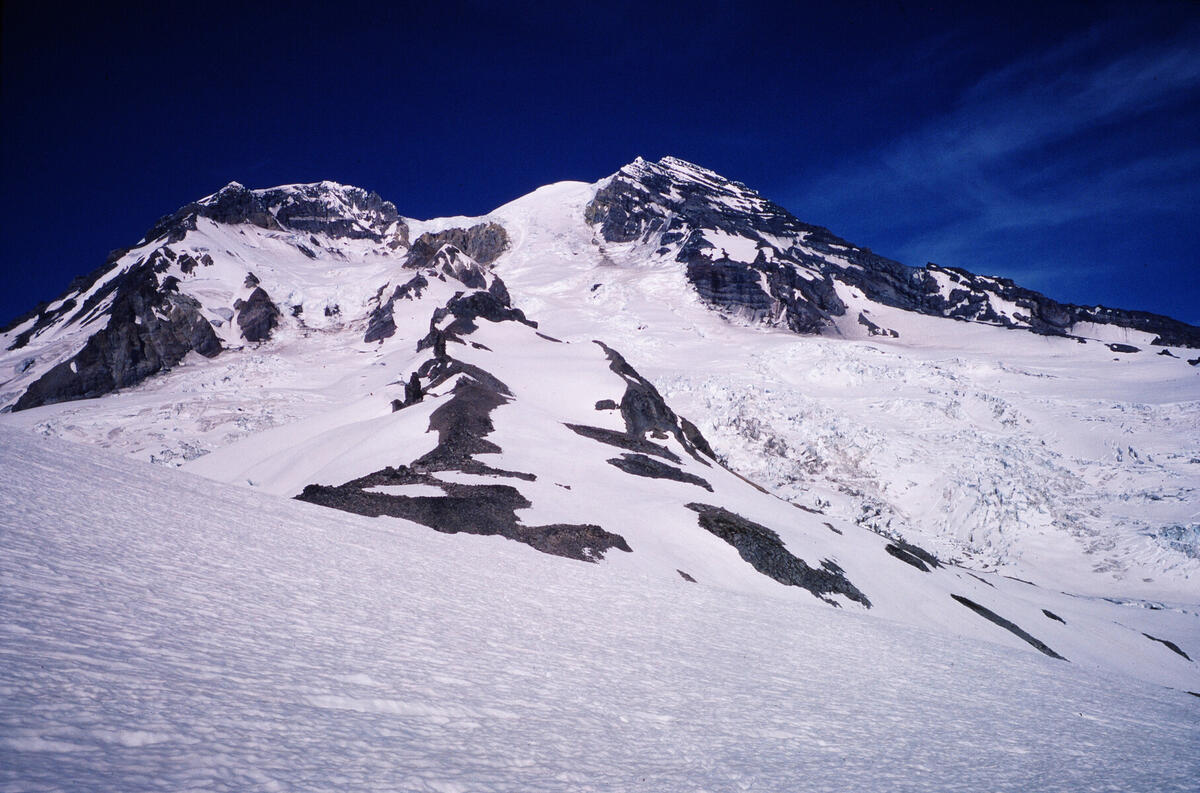 The Tahoma Glacier to the right (left of summit) with the Puyallup Cleaver