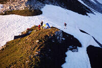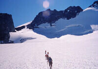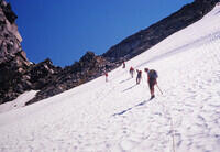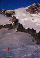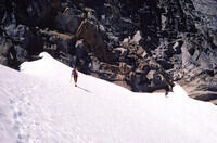 up the ridge, then out on the glacier to check the route. Finally Bob arrived