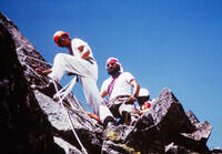 unpleasant climbing on very rotten rock. On the second, we went part way