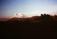 Mt. Hood in the far distance, and Mt. St. Helens, pre-eruption, above and
