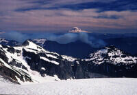 Mt. Adams from Rainier. There appears to be a forest fire between the
