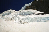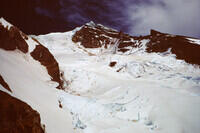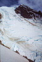 Looking at the Tahoma Glacier from the Puyallup Cleaver. The route on the