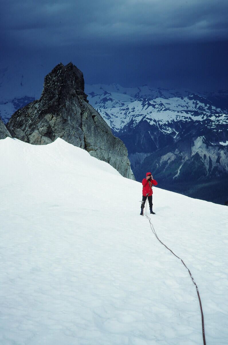 Heading toward the summit of Mt. Shuksan in somewhat threatening weather.