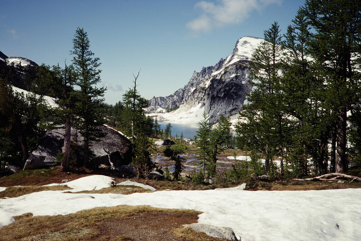 Looking back toward Perfection Lake on the way to Prusik Peak.