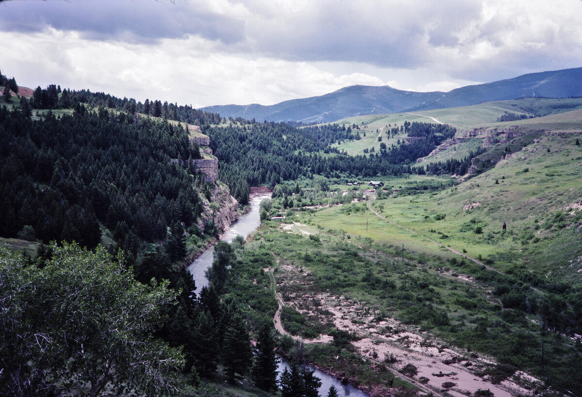 Sluice Boxes State Park in Montana. This is on my way to Canada to visit my sister and go climbing with Hal Murray. See another 1981 show for that trip. Google image search actually identified the location and I confirmed it with Google Earth and other photos.