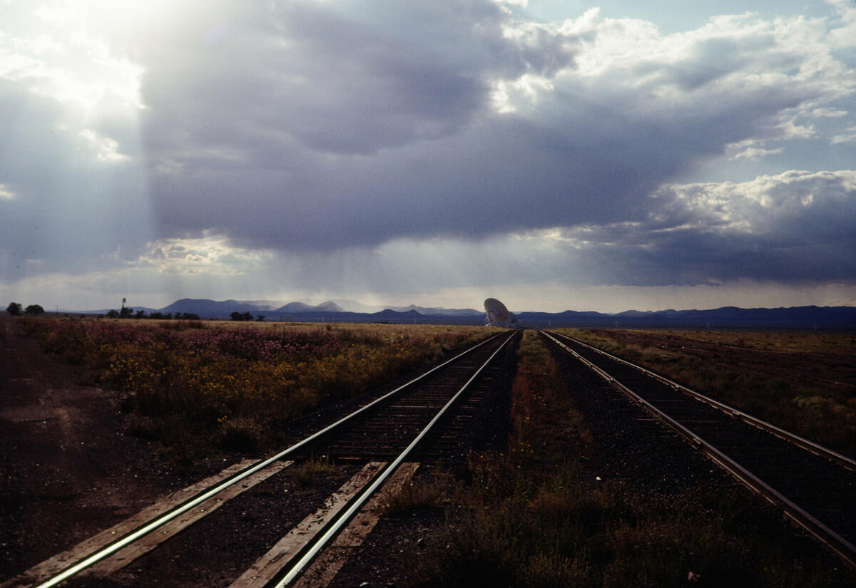 Looking west down the east arm of the VLA in stormy weather from NM 52.
