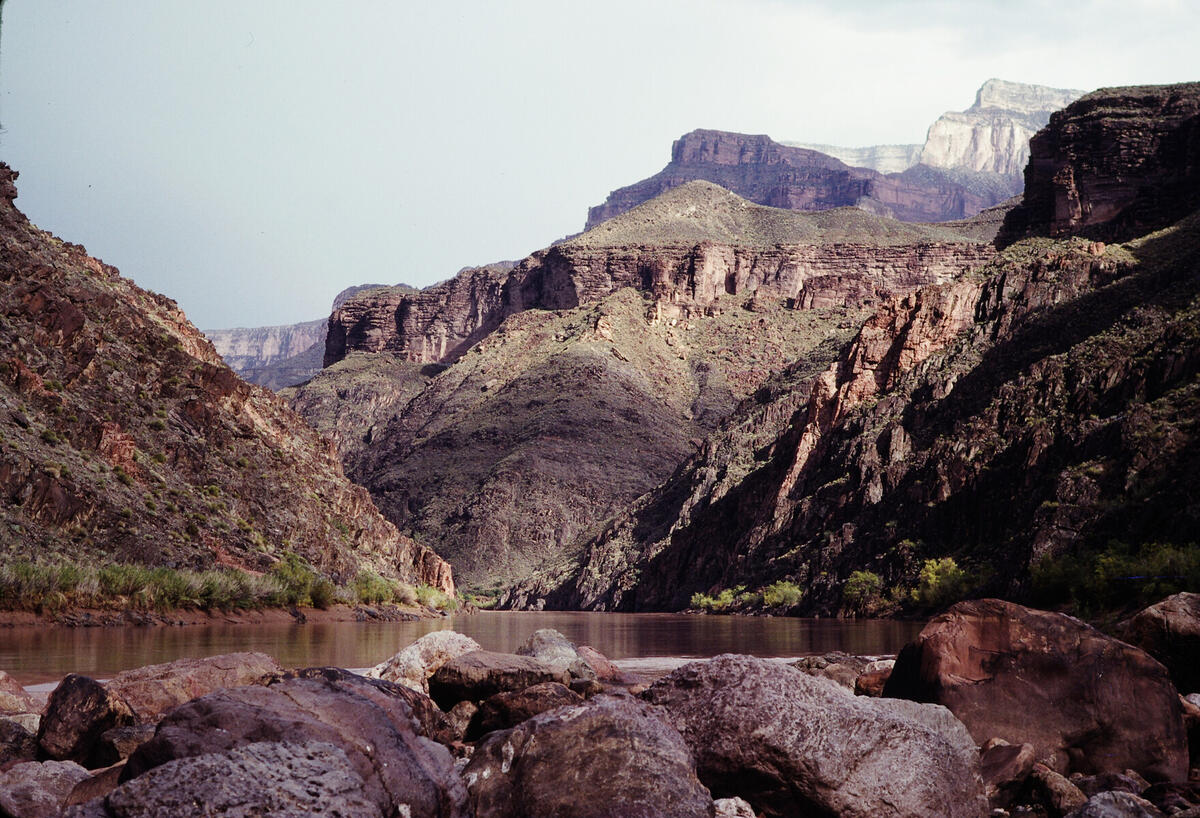 Looking upstream from the Hermit Rapid in the Grand Canyon.