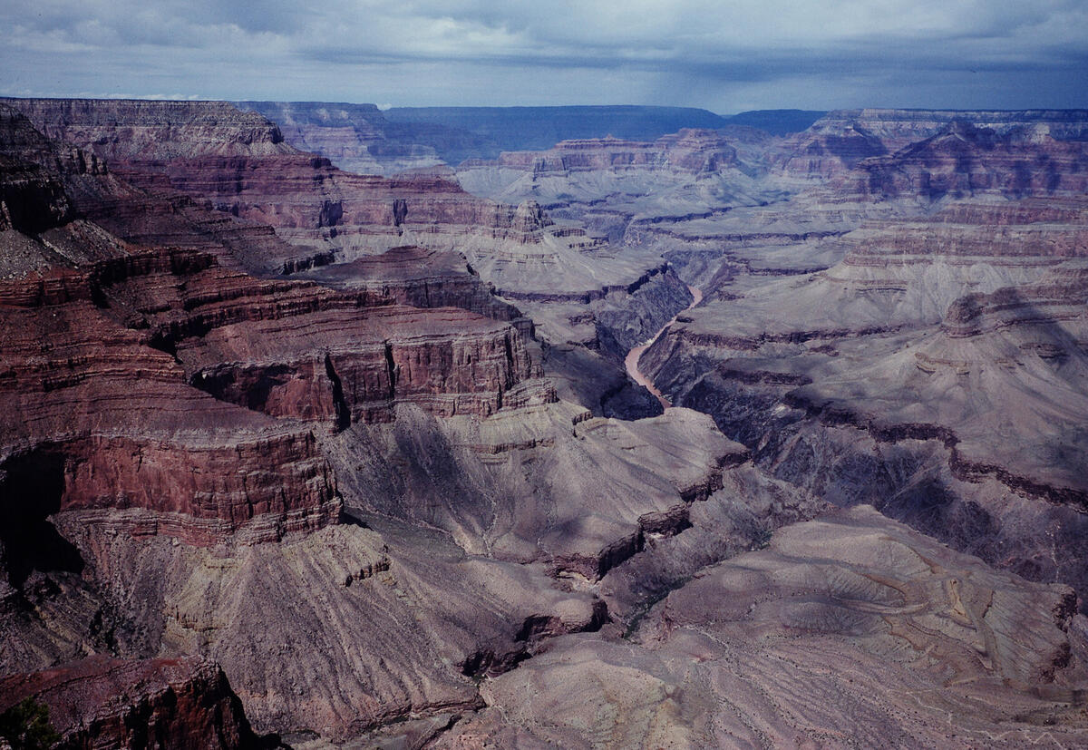 Looking down into the Grand Canyon from high on the Hermit Trail, perhaps at the rim.