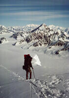 B108S10 Hal Murray along the cornice looking toward Mt. King George from the